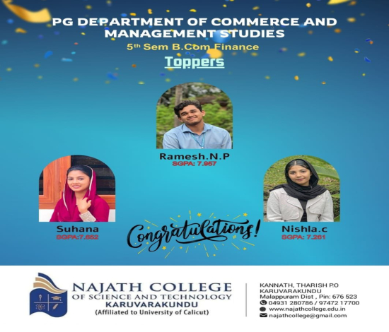 V Semester BCom Finance UC Exam Toppers Nove 25