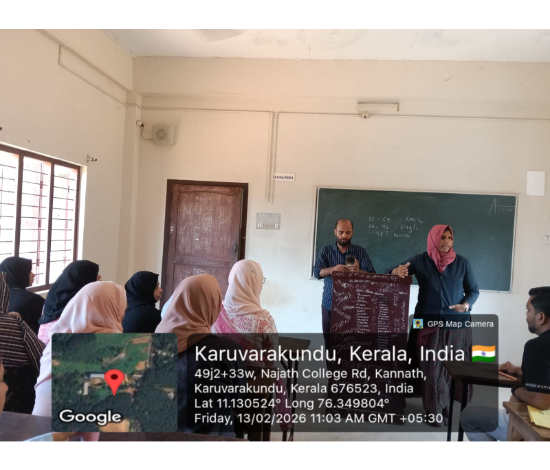 The PG Department of English at Najath College of Science and Technology, Karuvarakundu, organises a workshop on Project Management for UG students on 27 August 2025. Led by Assistant Professor Ms. Ameena VM, the session is to introduce key strategies for effective planning and execution, drawing active participation from postgraduate students.